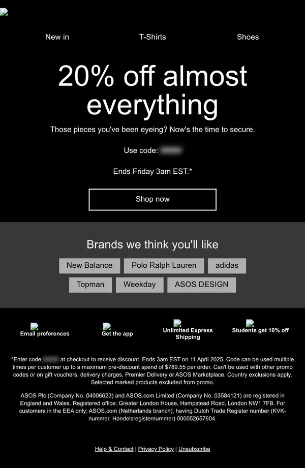 Brands like ASOS know precisely how to segment their emails.