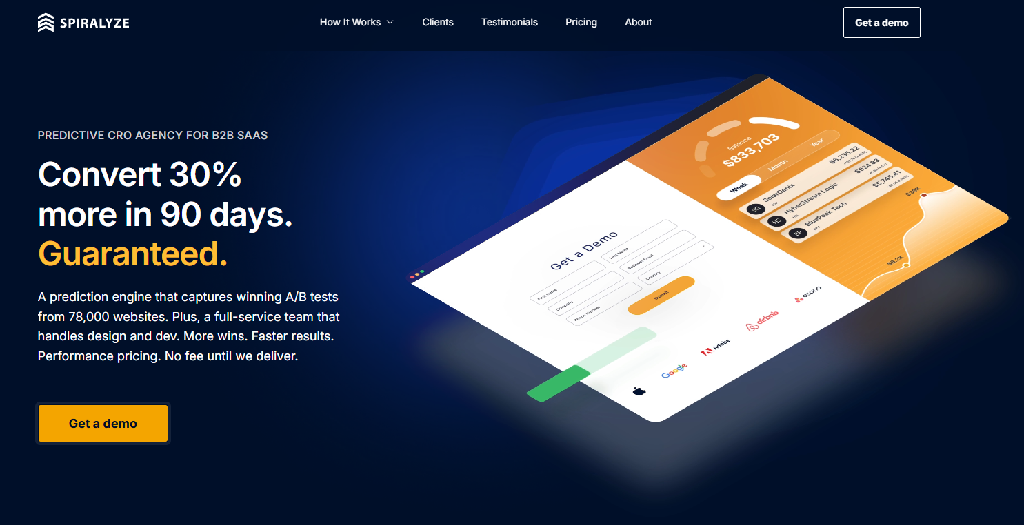 Spiralyze is the big dog here. They’ve got this “prediction engine” that crunches data from over 78,000 A/B tests so they’re not just throwing ideas at the wall. Instead, they redesign whole pages, test them, and back it all with data.