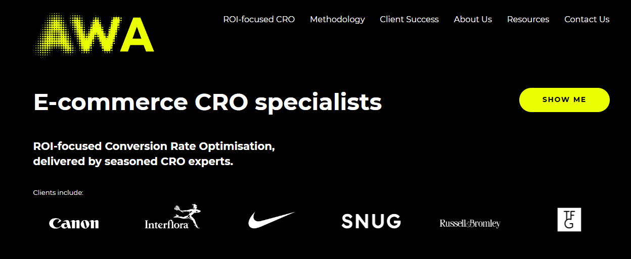 AWA Digital runs CRO programs across both Europe and Africa. They’re known for deep research, customer journey mapping, and full funnel optimization.